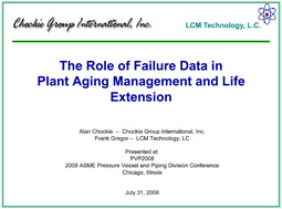 Presentation at the ASME 2008 Pressure Vessels and Piping Conference, Volume 1: Codes and Standards