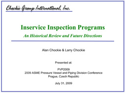 Presentation at the ASME 2009 Pressure Vessel and Piping Division Conference