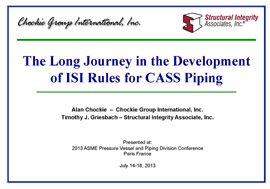The Long Journey in the Development of ISI Rules for CASS Piping